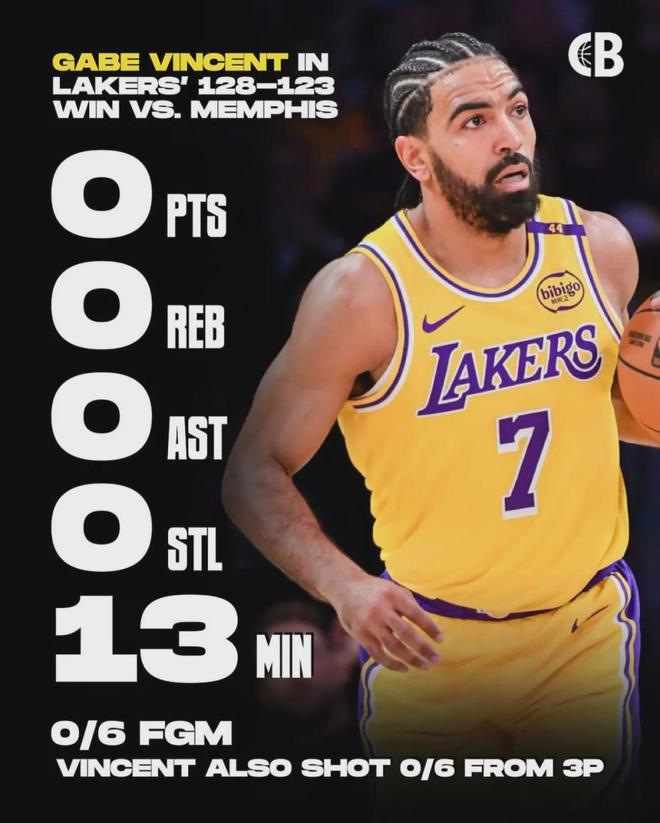 文森特的表现让湖人球迷想起了纳恩,当时不少人骂文森特是诈骗犯。2024-25赛季初,文森特的表现依然有点辣眼睛。赛季前11场比赛,他场均仅到2.9分,投篮命中率27.1%,三分命中率16.7%。其中有四场仅得2分,还有两场怒砍0分。
